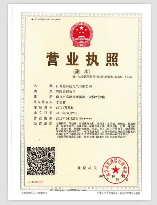 江蘇金風揚電氣有限公司位于風景秀麗的江南古城鎮江東郊的揚子江畔,被國家命名為中國工程電器國家級電力電器產業基地的揚中市,常泰高速由泰州長江大橋將京滬高速和滬寧高速在揚中連貫,西靠南京機場,北近江都機場,南接常州機場和上海虹橋機場,交通十分便利。 本公司主要以生產輸配電為主的高低壓開關柜、配電箱、絕緣封閉母線槽、管形母線、鋼制電纜橋架、防火阻燃橋架、不銹鋼、鋁合金、玻璃鋼橋架、網格式電纜橋架等產品。現擁有國內外的生產和檢測設備。在華東建筑設計院等專家學者的幫助指導下,引進和吸納國內外的新技術、新成果、實現了建筑、能源和基礎設備領域的電氣化、智能化的新格局。產品銷往全國28個省市和地區,已為全國2000多項著名工程提供了配套服務。產品廣泛用于電廠、冶金、化工、建材、電子、水處理、工礦、機場、學校、房地產、市政工程等行業。 公司始終堅持“技術創(chuàng)新、質量可靠、堅守承諾、顧客滿意”的質量方針與您...